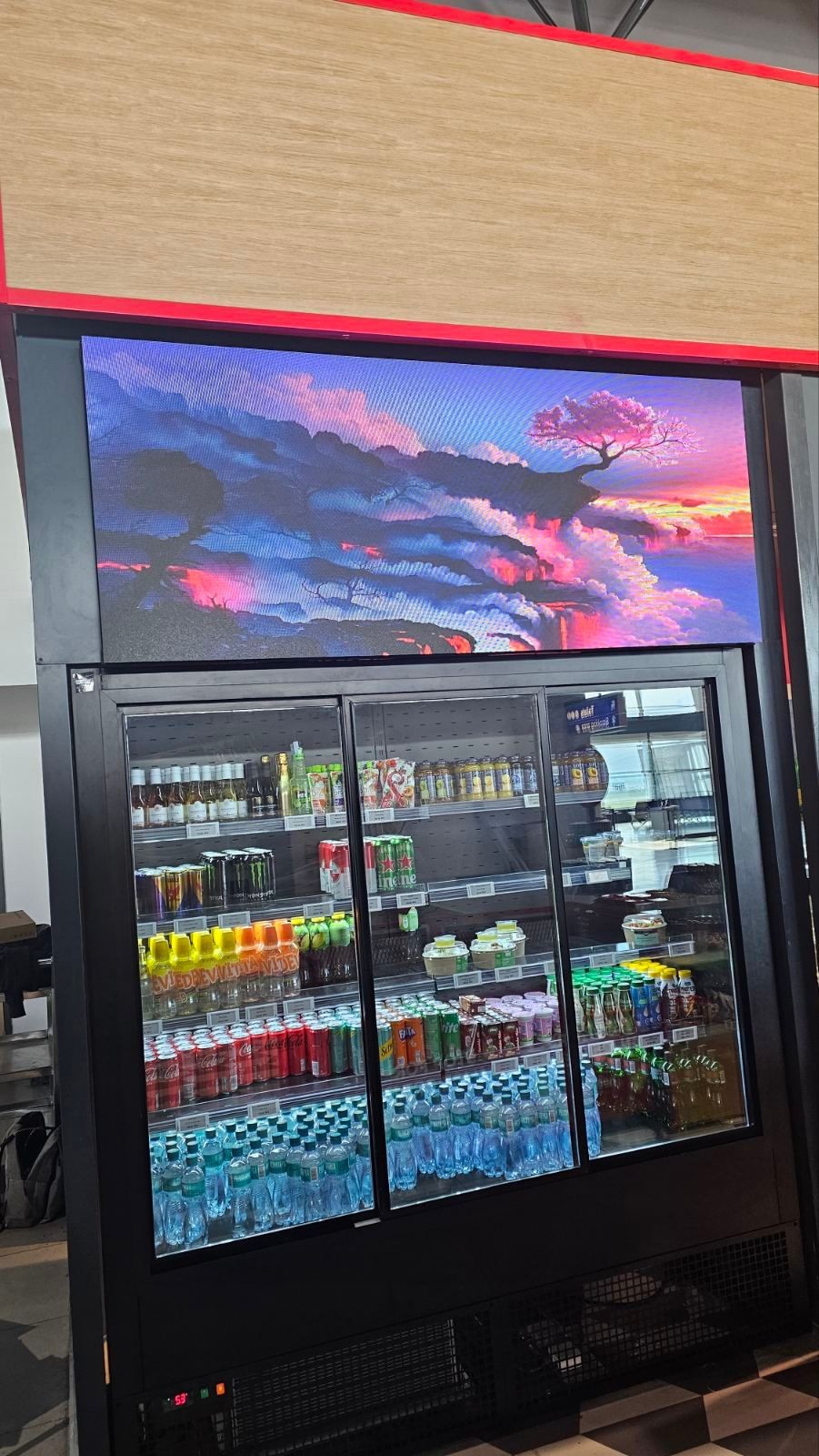 In December 2025, for the purposes of our client BTA DOOEL Macedonia, the airport catering service in Skopje, and with support of our manufactures and partners from China, we produced an indoor LED screen which was mounted on their shop at the airport.